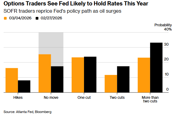 亚特兰大联储的数据显示,截至周三,交易员对美联储在今年年底前维持基准利率不变的概率定价为25%,高于美伊冲突爆发前最后一个交易日(上周五)的17%。